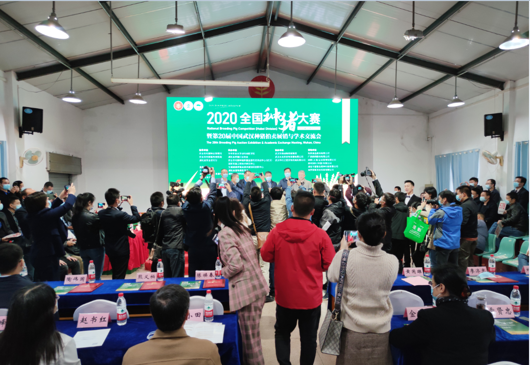 10月18日上午,“2020年中國(guó)農(nóng)民豐收節(jié)系列活動(dòng)”——全國(guó)種豬大賽(湖北賽區(qū))暨第20屆中國(guó)武漢種豬拍賣會(huì)在華中農(nóng)業(yè)大學(xué)國(guó)家種豬測(cè)定中心舉行。簡(jiǎn)短的開幕式過后進(jìn)入拍賣階段,來自全國(guó)的數(shù)十家生豬養(yǎng)殖企業(yè)參加拍賣會(huì),武漢市江夏區(qū)金龍畜禽有限責(zé)任公司長(zhǎng)白豬以4.2萬元價(jià)格被湖北金農(nóng)谷農(nóng)牧科技股份有限公司購(gòu)得,成為新“標(biāo)王”。